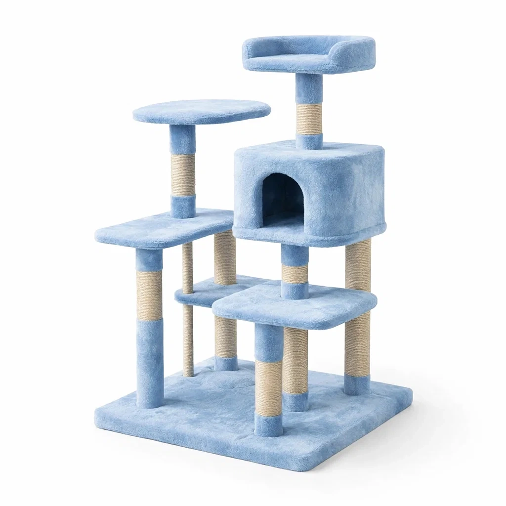 Componenti: piattaforme multiple, una casetta, pali tiragraffi.