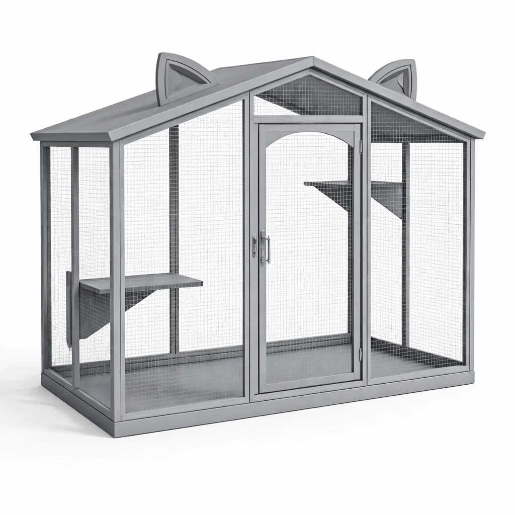 Dotata di tetto con decorazioni a forma di orecchie, ripiani interni per arrampicata e riposo.