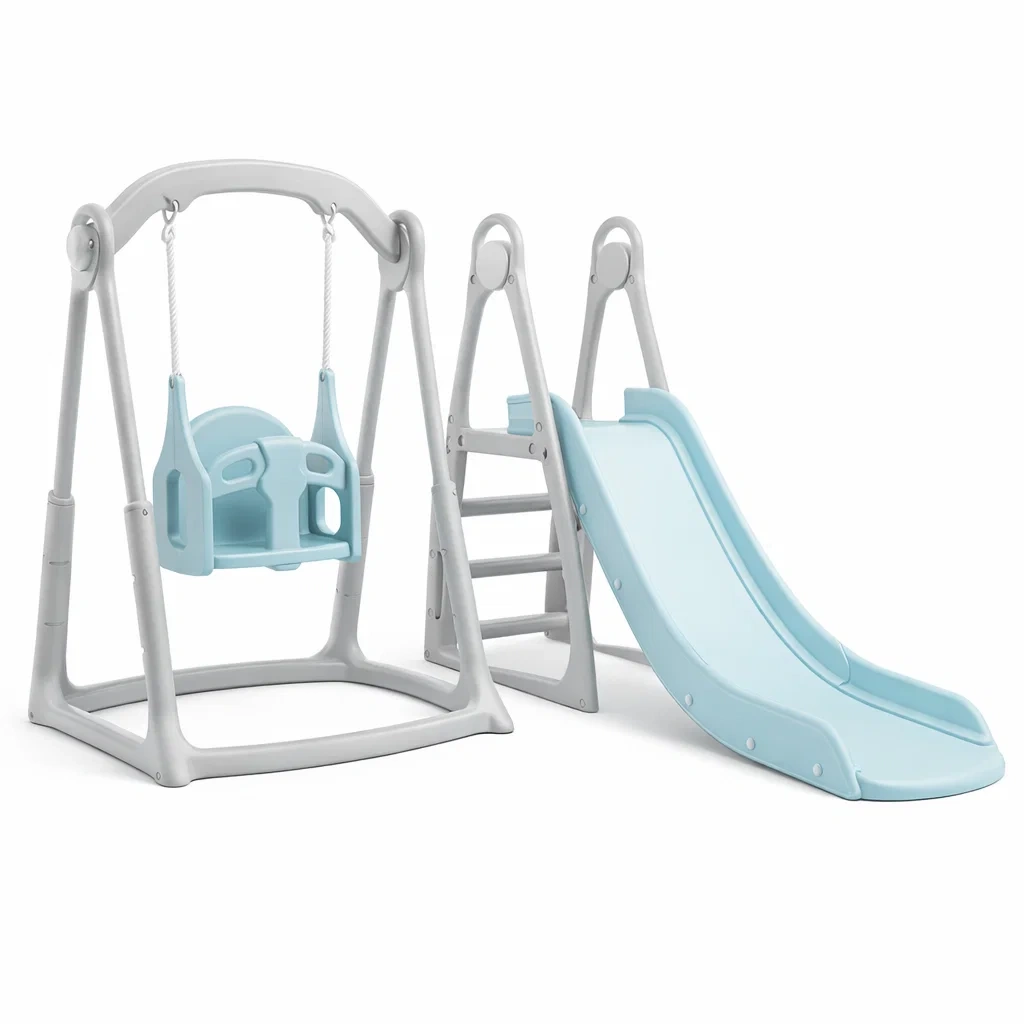 Set composto da scivolo e altalena per bambini, realizzato in plastica polipropilene durevole.