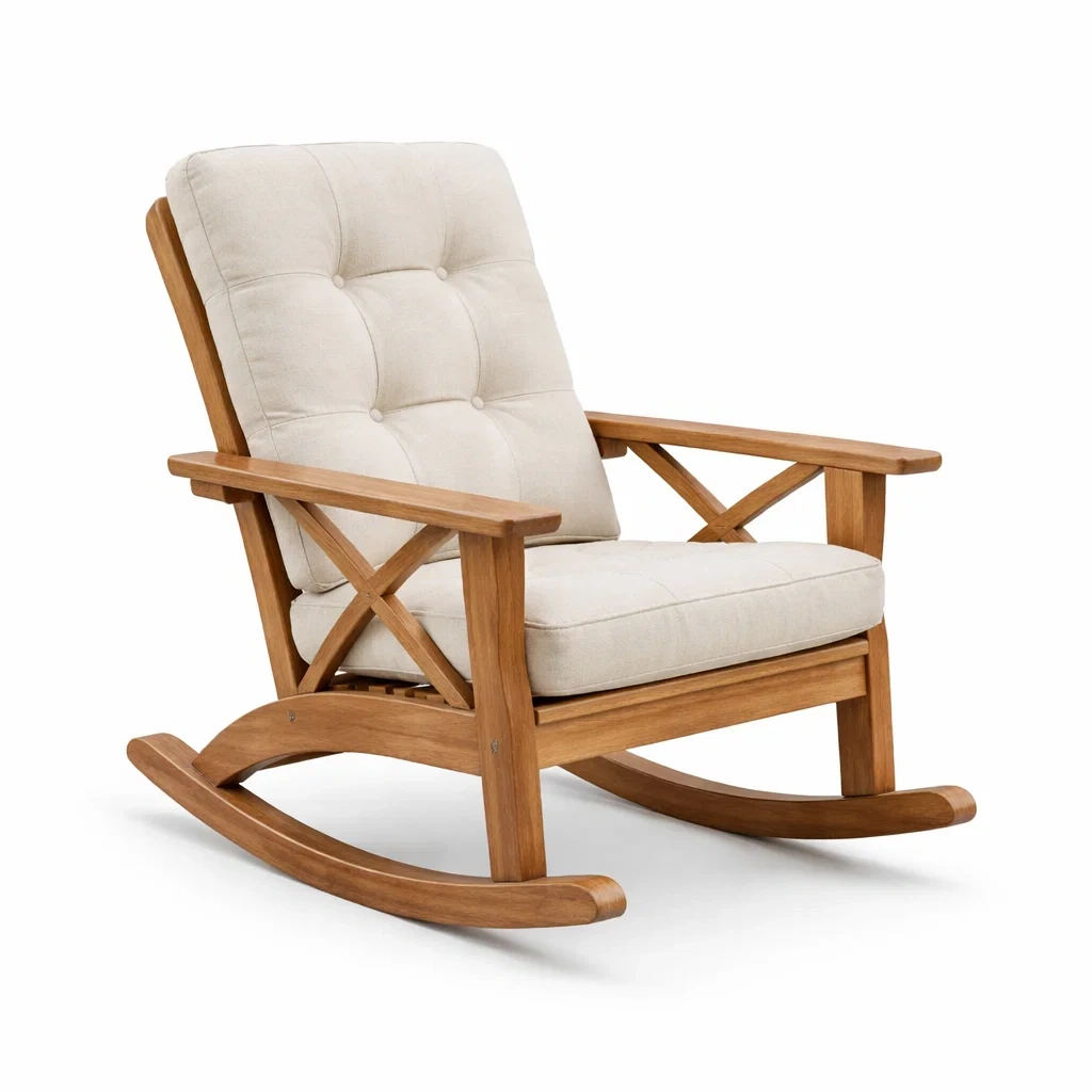 Teak con Cuscini in Tessuto Crema Sedia a dondolo