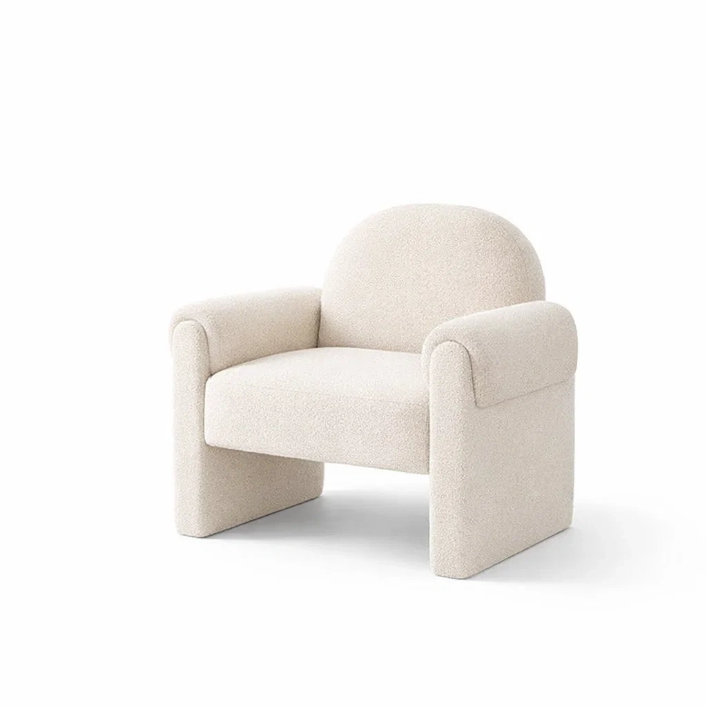 La poltrona è realizzata in tessuto bouclé. Dimensioni: altezza 78 cm x larghezza 80 cm x profondità 80 cm.