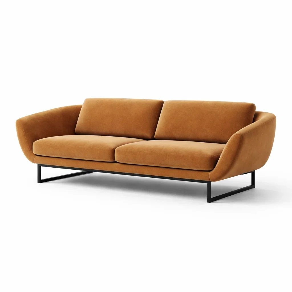 Velluto Marrone a Tre Posti con Struttura in Metallo Divano